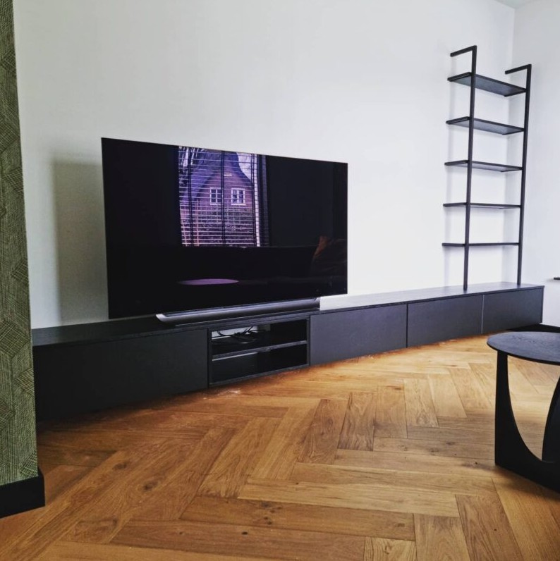 De Tv Meubel Deen kan in verschillende maten en kleuren gemaakt worden. En kan ook zonder wandrek geleverd worden.