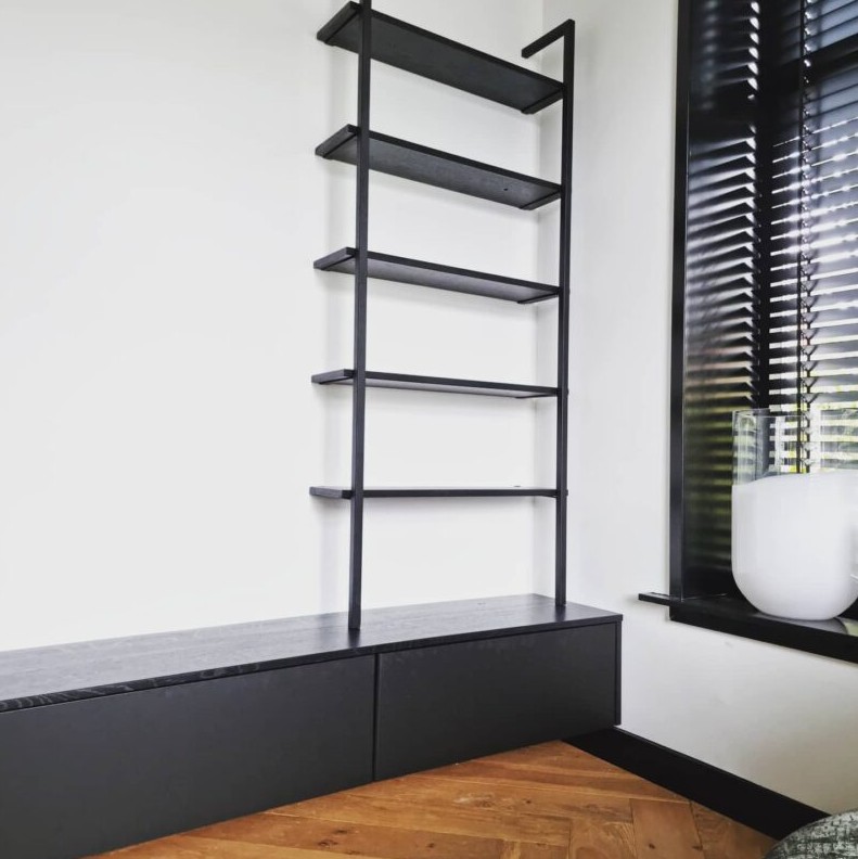 Kleur: Eiken behandelt met zwarte olie, metaal in mat ral9005